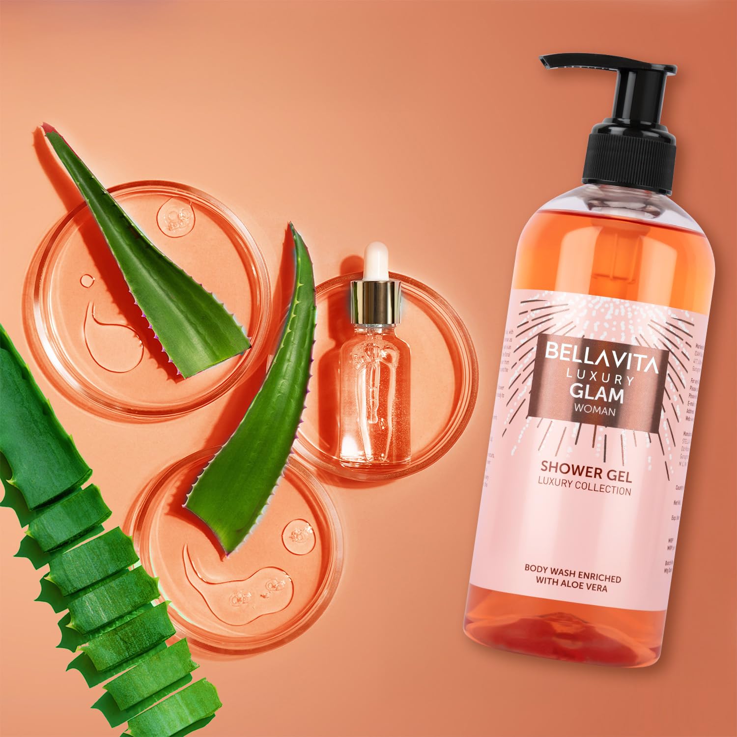 Bella Vita Luxury Glam Woman Body Wash Shower Gel for Women | 500ml | Deep Cleansing, Hydrating & Moisturising with Aloe Vera Extract | Softer, Smoother Skin | Suitable for All Skin Types