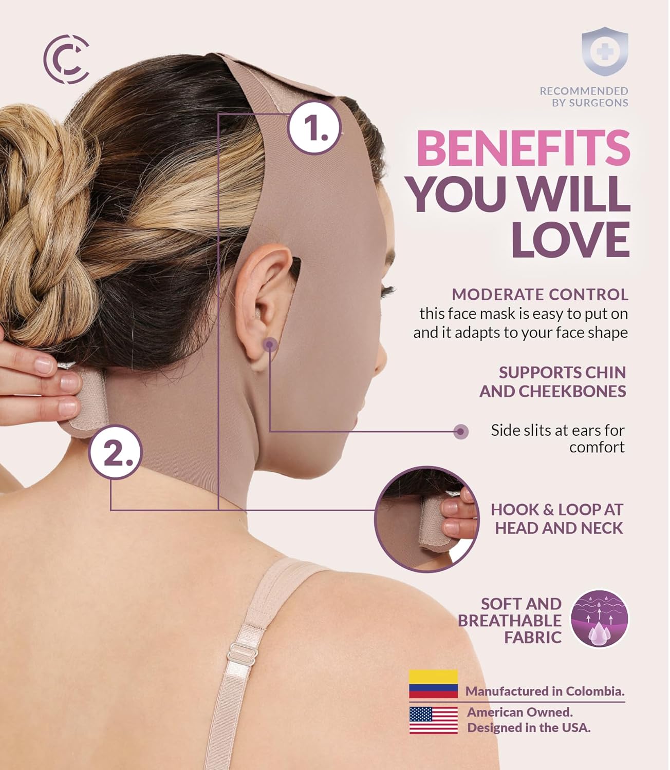 PROMOTES RECOVERY: Designed to promote healing without causing pain or discomfort post-surgery, this chin compression strap is your best companion. Thinking of you, CURVEEZ has created a modern chin strap compression garment with open ear design. You can also adjust the compression at your preference thanks to its hook-and-loop closure. This comfy chin post surgery strap is ideal to wear every time.