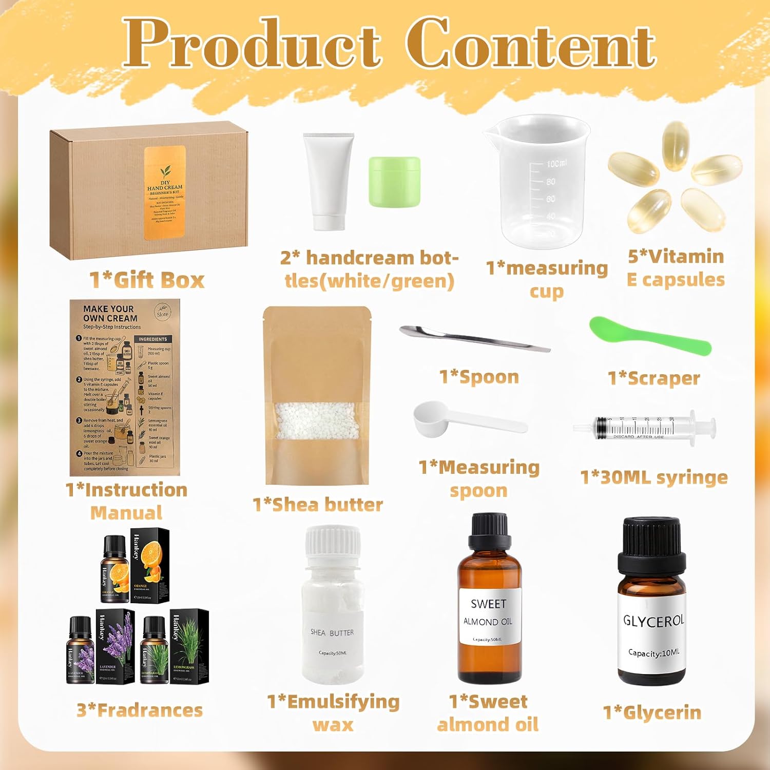 ALL-IN-ONE STALL-IN-ONE STARTER KIT Includes everything you need to create 2 nourishing hand creams at home – perfect for beginners, gift-givers, or self-care lovers.