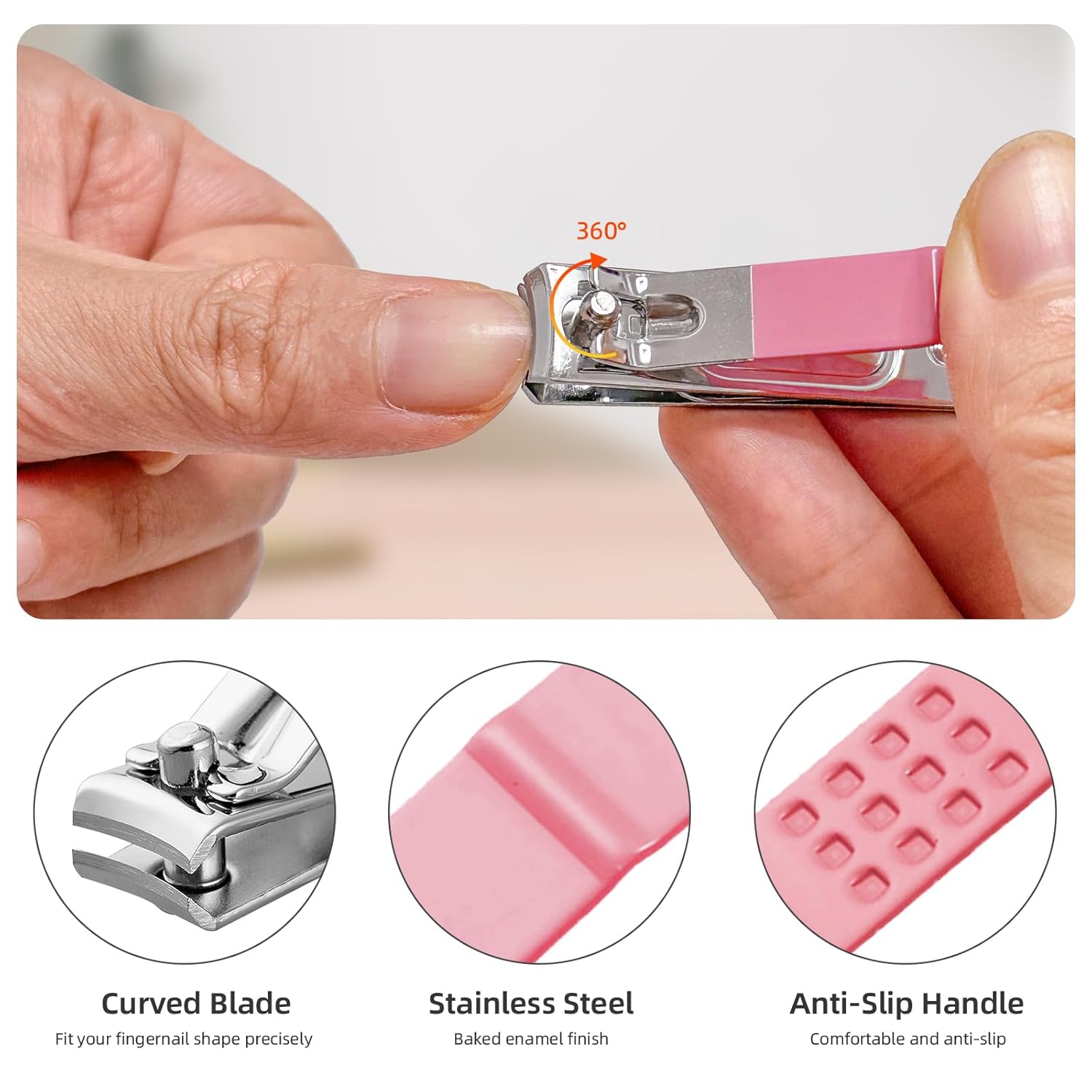 ❤Unique design: Our nail clippers for women highlight is pink tools with pink premium PU leather textured case, feel comfortable, stylish and practical. This design makes it easy to carry when you travel and ensures that you have access to your nail clipper set no matter where you are.
