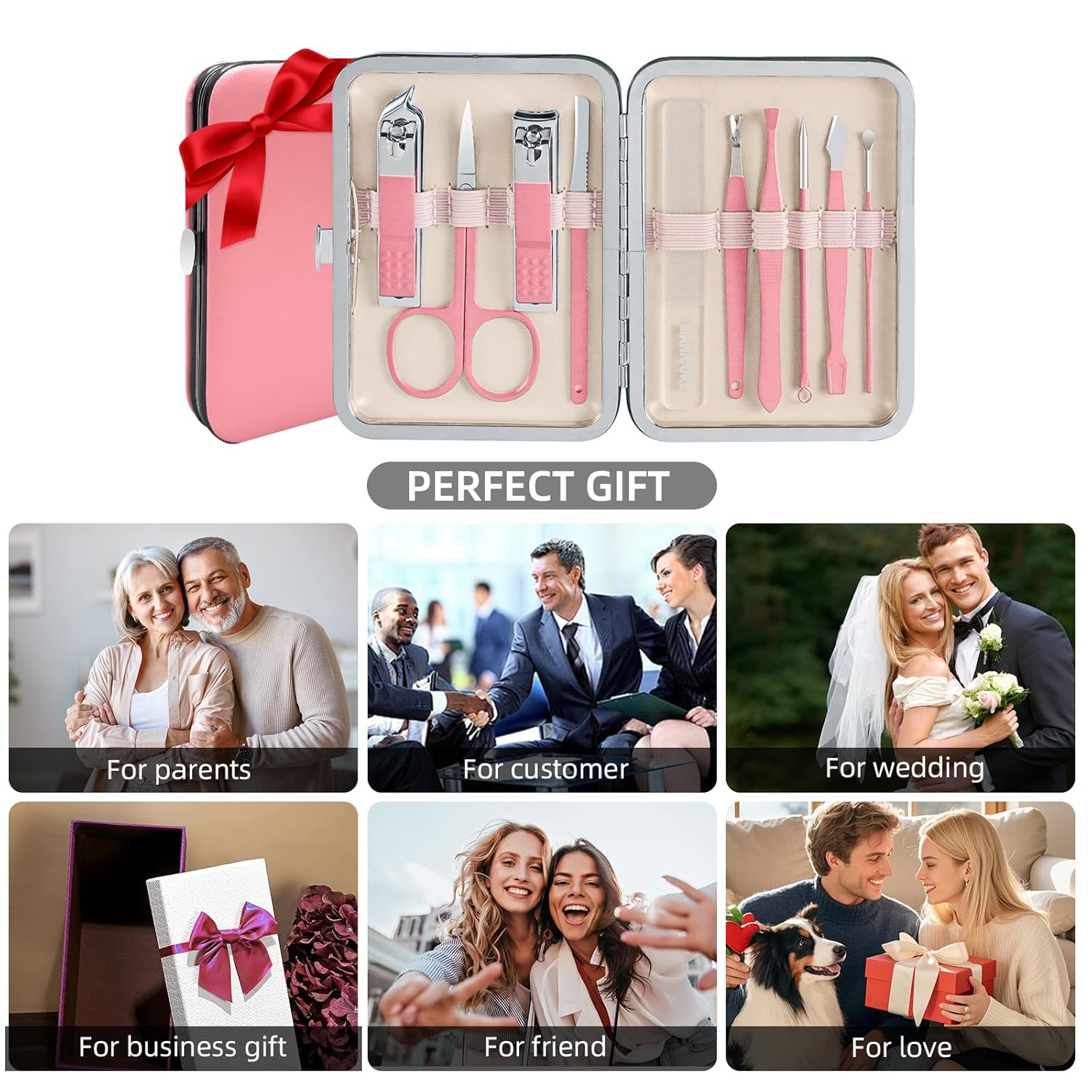 Manicure kit 10 in 1 Professional Manicure kit for Women, Nail kit,Grooming kit,Manicure Set Personal Care Manicure Set Women,Nail Care Tools with Luxurious Travel Case(Pink)