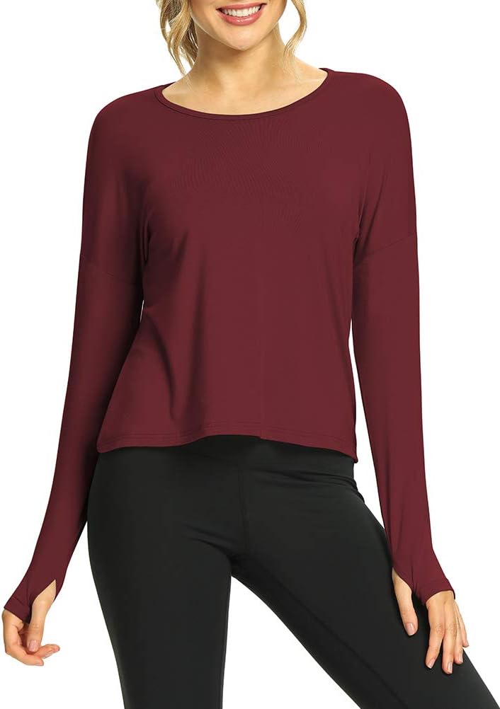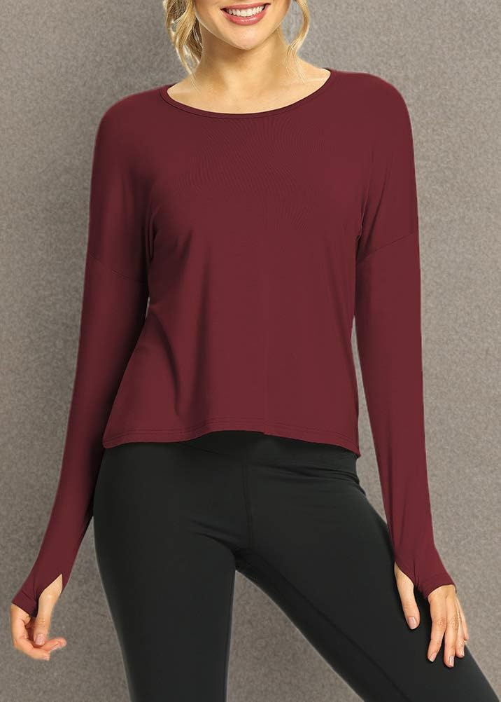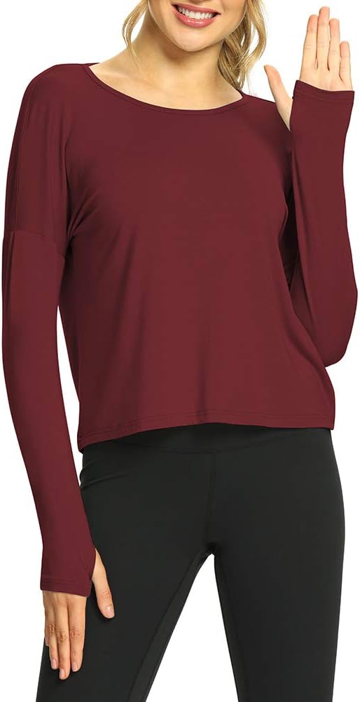 Mippo Womens Open Back Long Sleeve Workout Tops Athletic Gym Shirts with Thumb Hole