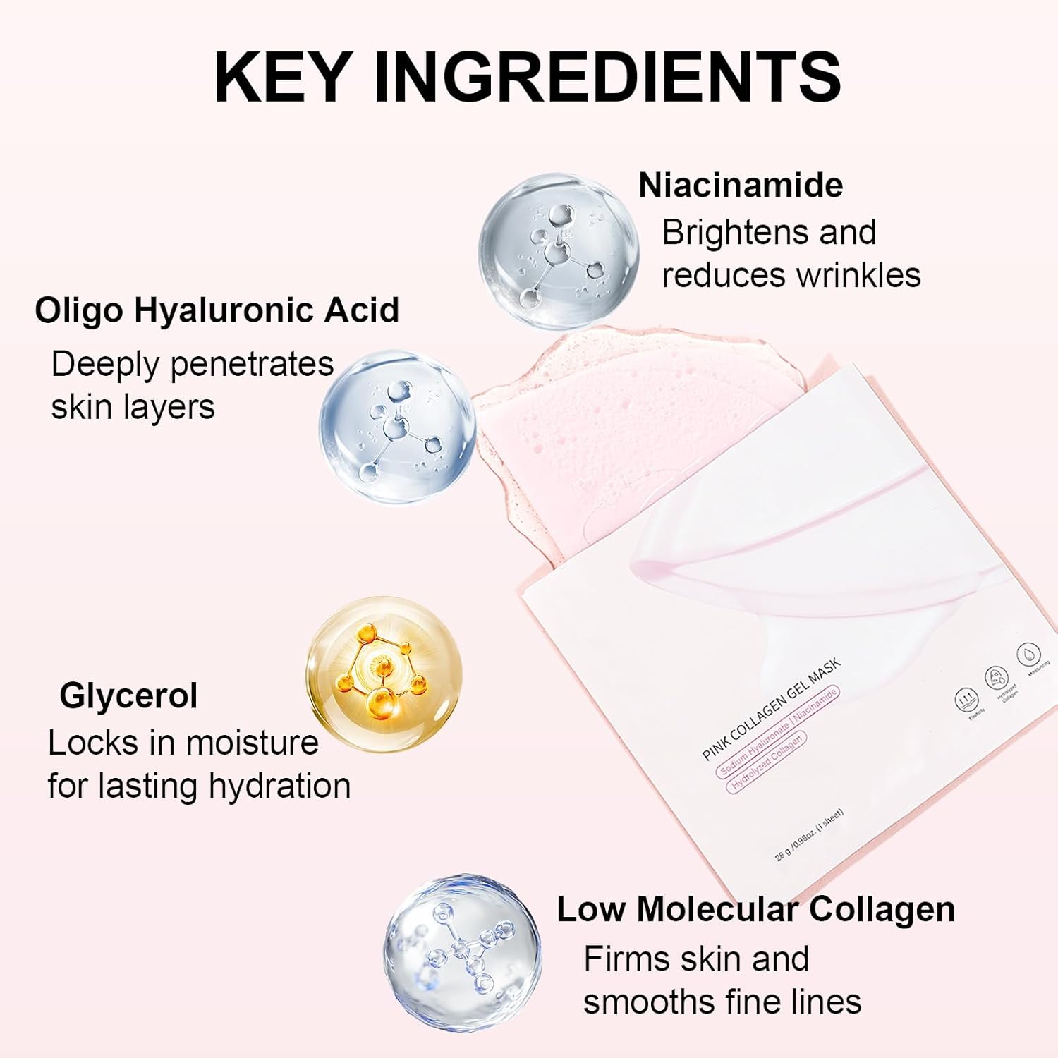 Pink Collagen Jelly Gel Sleeping Mask, Overnight Face Mask for Glass Glow Skin Hydrating Firming Elasticity, Deep Moisture Barrier Care, Cooling Refreshing Korean Skincare, 28g x 4pcs