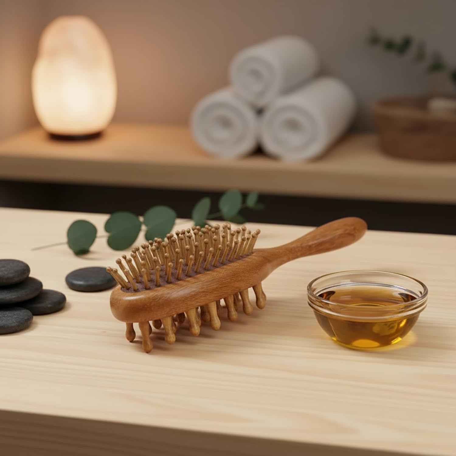 Premium Natural Sandalwood: Crafted from high-quality, hand-polished sandalwood with a smooth surface, safe for sensitive scalps. Keep dry to maintain the solid wood structure.
